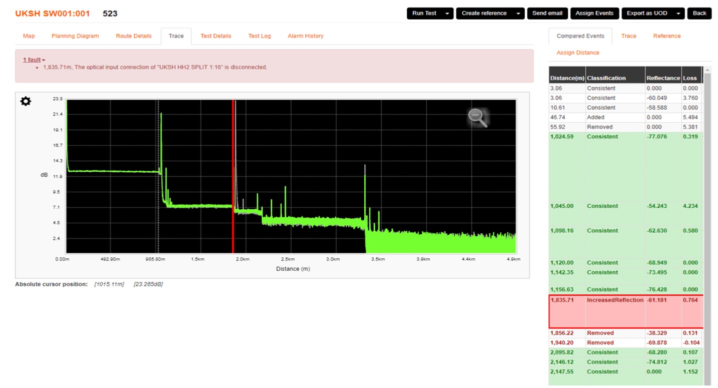 Introducing our comprehensive Point-to-Point testing solution designed to monitor both live and dark fibres. With the capability to test up to 100km of fibre cable, our system offers flexible options for periodic testing or real-time monitoring of your point-to-point networks. Our automated test function ensures frequent testing and instant alerts for any changes detected. After conducting tests, our diagnostics provide clear indications of No Fault/Fault. In the event of a fault, our system sends immediate alerts to engineers, specifying the exact fault location and severity.